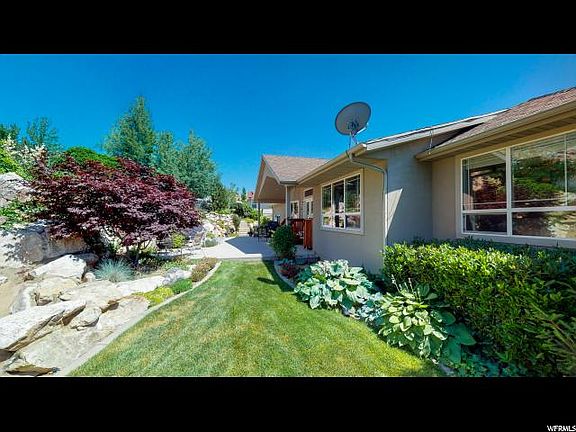PRICE REDUCED.........SPECTACULAR SUNSETS and breathtaking views for you to enjoy on this south facing rambler high on the mountain of Pleasant View close to scenic Ben Lomand Peak. Bright open floor plan featuring beautiful engineered hardwood floors, vaulted ceilings, custom maple cabinets, pantry, new Bosch dishwasher, large island, gas countertop range, formal living room, large main floor family room, main floor laundry and we are just getting started. 2 bedrooms up and 2 bedrooms down and you will especially love the large master suite that will accommodate your bedroom furniture with room to spare, separate tub and shower, walk in closet, and natural glass lighting. The den/craft room/ could be a 5th bedroom. Just needs a closet. Downstairs is a large 2nd family room with kitchenette for those family gatherings, games and even room for a ping pong table. AMAZING one of a kind backyard with full privacy and beautiful landscaping. Lovely patio for those summer BBQ'S, fruit trees, pathways to the firepit, and upper terrace, auto sprinkling system, secondary water 3 car garage and RV parking. Pride of ownership in every corner. Call today.