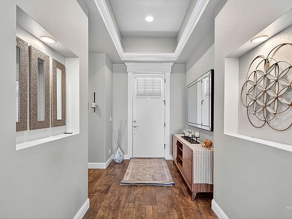 Step into the "Hallmark" built by Hallmark Homes, a captivating single-level home with an elegant private courtyard entry. Inside, you'll discover a wealth of upgrades and thoughtfully designed spaces. The gourmet kitchen is a culinary enthusiast's delight, with a spectacular eating area that easily accommodates large furniture. A dedicated office and a spacious laundry room provide convenience and organization. The 3 large extra bedrooms include a flexible setup where 2 bedrooms share a convenient Jack-and-Jill bath, while the 3rd bedroom doubles as a bonus space. Unwind in the tranquil main suite, a sanctuary featuring dual vanities, a luxurious soaking tub, and a generous walk-in tile shower. A substantial covered patio extends your living space outdoors where you'll find a lush oasis which includes 3 fruit trees along with a grape vine. Welcome home!