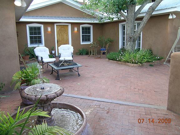 Corrales living at its finest!Now is your opportunity to get an amazing steal!This horse property includes views,RV pad/hookup,barn,corral & spacious living all-in-one!This home was designed for entertaining & includes a wet bar overlooking KT/DR/FR & opening to a brick patio w/water fountain.Home features updates in the KT and MB w/granite & decorative tile countertops,saltillo tile,kiva fireplace,laminate flooring,elegant woodwork & natural lighting.Small office off garage w/separate entrance.