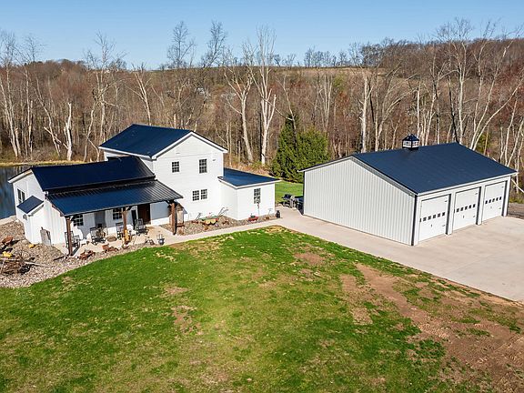 Beautifully renovated 4-5 bedroom, two-story farmhouse set on 55 picturesque acres in the sought-after Central School District. Whether you are looking for hunting land, farming land, or just don't want neighbors, this property has it all! This charming home offers a custom kitchen and a spacious first-floor primary bedroom with an en suite bath, blending timeless character with thoughtful modern updates. Outside, enjoy a 36x44 heated three-car detached garage and a 36x49 outbuilding—perfect for a workshop, business, or hobby use. The property also features a serene pond, adding to the peaceful, rural setting. A rare opportunity to own a versatile country retreat with space to live, work, and unwind. Copy and paste link to watch drone footage: https://youtu.be/sm0v4-fRMYU