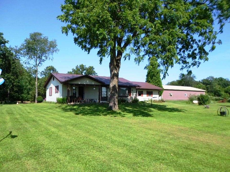 1120 sq. ft., 2 bd, 1.5 ba. on 2 acres. Location, location, location! Right off US 31; this is a great commuter home. Beautiful lawn, just enough trees and a 72 ft pole barn with an RV size garage door. Home has three heating sources to choose from; gas, electric and wood pellet. Deck on back side and covered porch in the front. Wheelchair accessible, newer metal roof, generator, corn pellet stove. Don't wait to call on this!