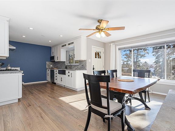 *NO CITY TAXES* Impressive home with fantastic views of Castle Rock! Set on a generous .65-acre corner lot, this home offers incredible city views, especially captivating at night, along with the peace and quiet of a location with minimal traffic. From the kitchen, you can take in views of Pikes Peak, adding a beautiful backdrop to your daily routine. Inside, you'll find a cozy dining space with a fireplace, perfect for creating memorable moments. The updated kitchen features sleek granite countertops, stainless steel appliances, and abundant storage options that make meal prep a breeze. The family room is filled with natural light pouring through large windows and includes a stylish dry bar with a wine cooler for hosting friends and family. On the main level, you'll also find two spacious bedrooms and an updated full bathroom with a large soaking tub, step-in shower, and cohesive accents. Relax in the breezeway/sunroom, a serene space that's perfect for unwinding, especially during the warmer months. The finished basement offers endless possibilities, including plenty of room for a work or hobby space, along with a large living room, three non-conforming bedrooms, a bathroom, and a laundry area. Enjoy unparalleled privacy with a backyard that backs to open space. With an attached 1-car garage, plenty of driveway parking, and no HOA, this home offers ultimate flexibility and convenience. Located in a sought-after Castle Rock neighborhood, you’re just minutes from everything you need, all while enjoying the privacy and serenity this property provides.