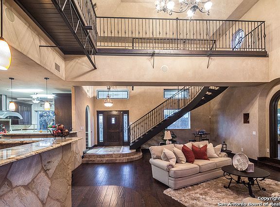 Your Canyon Lake retreat offers the best of both worlds! This well-constructed, beautifully detailed home is situated perfectly on top of 30+ acres in JDJ Ranch and takes advantage of spectacular evening sunset views of Canyon Lake. Walk in to the 3,210 sf home and you are welcomed by a floor-to-ceiling fireplace in the generous main living area, eat-in kitchen with breakfast bar and walk-in pantry, wet bar with door to back patio, main floor master and master suite with two vanities, lrg walk in closet.