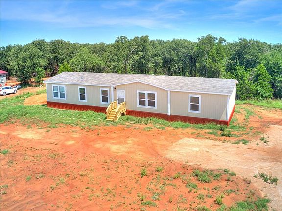 Want a little space? Here is the property for you. Seller is adding a 2 car garage. This home sits on approximately wooded 2 acres. This home features a rustic feel. You will walk into an open concept. The kitchen offers a island and a large walk in pantry. The home features 4 bedrooms, 2 bathrooms and 2 living areas. The master bath has dual sinks, a walk in shower and large tub. The secondary bedrooms are a nice size with walk in closets. There are dual vanities in the secondary bathroom also. A large utility room. Outside you will find the storm shelter. **Address will not show up on GPS**