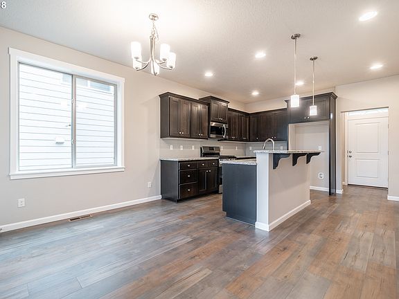 New home just completed in desirable N. Newberg neighborhood. Great room floor plan with gas fireplace and quality touches throughout. Granite counters, full tile back splash, laminate flooring, stainless steel gas appliances and pantry. Master on main with dual sinks and walk-in closet. Upstairs features 3 bedrooms and loft area. Close to schools and walking path.