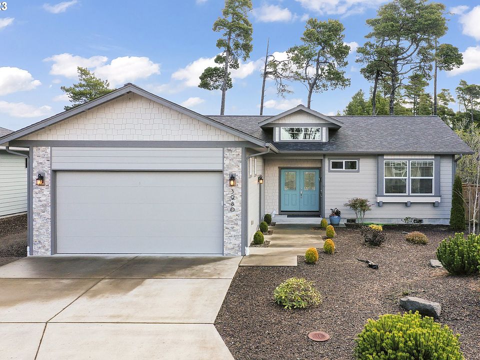 Sandpines East beauty! This meticulously maintained 2 bedroom 2 bath home offers an open floor plan with high ceilings, quartz countertops, keyless garage entry and much more. Primary bedroom suite features an easy access walk-in shower, walk in closet and double sinks. Enjoy nature and quiet time in the wind protected covered patio in the nicely landscaped and fenced back yard. The side yard contains a tool shed for gardening supplies. Walking trails are accessible from the HOA common areas for hiking adventures. This quiet gated community has much to offer, make an appointment to see this gem today!