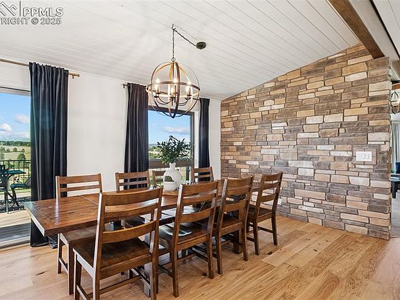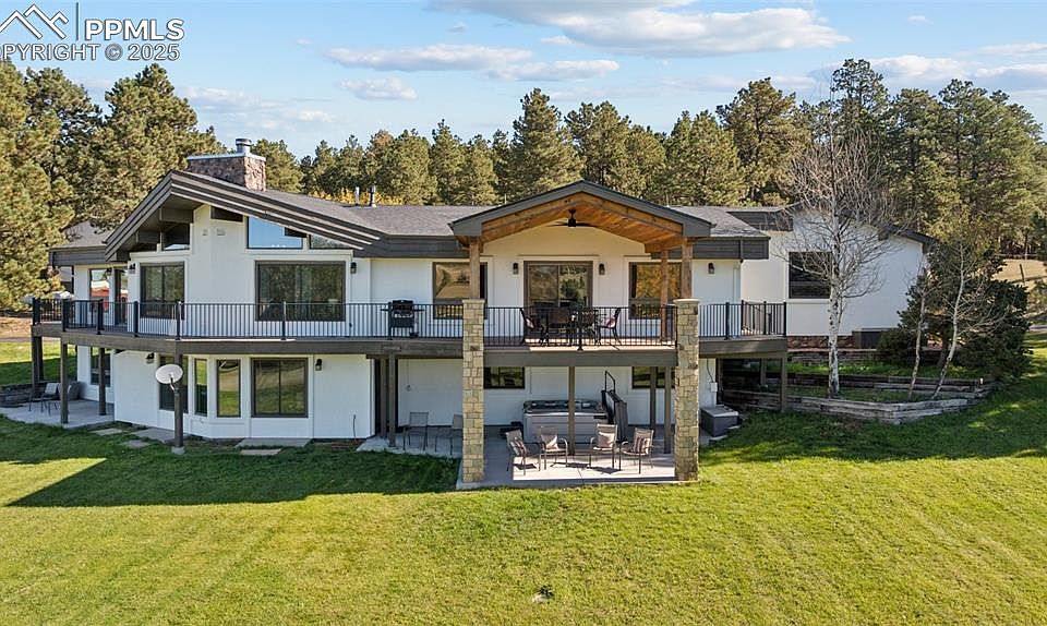 Country charm meets farmhouse elegance at this stunning 28.5-acre Walker Reserve custom ranch-style home, offering one of Colorado’s most breathtaking panoramic Pikes Peak views. Peacefully tucked among the towering pines of the Black Forest, this property combines privacy, beauty, and versatility, and is only 4 minutes east of Hwy 83 & 105 with easy access to nearby amenities. Inside, the entry opens to wood plank flooring, vaulted ceilings with beams, and expansive windows that fill the home with natural light while perfectly framing the surrounding scenery. The main level features a remodeled kitchen, an inviting sitting room, and a spacious dining area with seating for eight+. Just steps away, the covered deck extends the living space, ideal for entertaining or enjoying quiet evenings. The large family room, with stone-surround wood-burning fireplace, provides warmth and character—all with unforgettable views. The main-floor owner’s suite boasts a spa-like ensuite bath, walk-in closet, and private access to the wraparound deck. The professionally finished walk-out basement is an entertainer’s dream, offering a large recreation area with a stone gas fireplace, wet bar, and access to the under-deck patio and hot tub. A junior suite with walkout access, two additional bedrooms, and two fully remodeled baths complete the level. Additional highlights include an energy-efficient hydronic radiant heating system and an oversized garage. Equestrians, hobbyists, and entrepreneurs will appreciate the 3 outbuildings. A 60x50 workshop provides 3,000 sqft of workspace plus a 500 sqft loft/office with bathroom, kitchen, and laundry. Equipped with its own septic, radiant floor heat, forced air, and electricity, it is ready for creative pursuits. A 36x48 workshop with a concrete floor and electricity expands the possibilities. Horse lovers will enjoy the 3-stall barn with tack room, fenced pastures, and ample space for livestock. Truly one of a kind - Schedule your tour today!