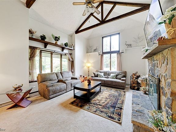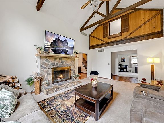 Welcome to the cottage by the lake! Enjoy living lake life...just moments away from Mosquito Lake. Take advantage of the nearby boat rentals and campgrounds...there is also a walking path down the street that leads you to a man-made beach! This home gives you that "cottage" feel with its curb appeal outside, and its soaring ceiling in the great room with beautiful wood beams and stone fireplace.