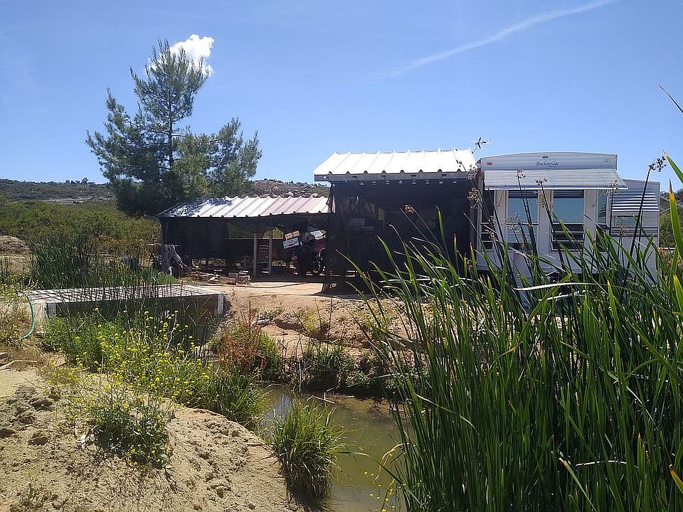 Beautiful established 2.51 acres power well views of Anza valley set up for horses livestock aquafarming just off paved rd .1993 Cambridge 40' park model goes with the land .
