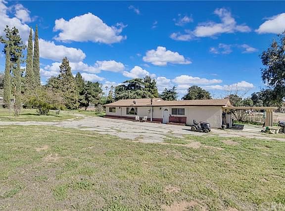 This adorable ranch style, 3-bedroom 2-bathroom 1,368 square foot single-story home is located on a gigantic 1.93 acre corner Lot in Cherry Valley! This home features an additional workshop and is zoned A-1, making it perfect for Horses. Stepping into the home you will find a hallway to your left, featuring a closet with sliding doors, a bathroom with a shower/tub combination, and leads to the dining room! Straight ahead you will find another closet to your left, great for extra storage, and the laundry room directly in front of you. To the right of the laundry room is a bathroom with a stand-alone vanity and a walk-in shower, the bathroom opens up into the master bedroom. The master bedroom is a great size and features tile flooring, a ceiling fan, a closet and has a door that give access to outside. There is another bedroom right off the master bedroom that is currently being used as an office and features carpet flooring and a closet! To the left of the laundry room is the kitchen which features tile flooring, Formica countertops, oak cabinets with an ample amount of storage space and is adjacent to the dining room. The dining room features vinyl flooring and large windows that allow plenty of light to flow into the space. Right off the dining room is the living room that features carpet flooring, two ceiling fans, and has a large window. The third bedroom is off the living room and features a great amount of space, carpet flooring, a ceiling fan and closet! This adorable home sits on a HUGE 1.93 Acre lot! There is a ton of flat usable space to add additional buildings, Pool, RV pad, Boat Parking, or any of your personal touches and make it your own! There is also an out building with tons of extra space for storage! This must-see home is located near dining, shopping, and freeway access. conveniently located next to newer shopping centers, restaurants, hospitals, highway access, and entertaining!