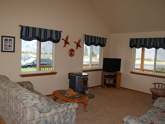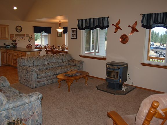 Perfect Getaway! This home sits on 5.9 acres and from the 872 sq ft of covered porches you will enjoy view of Lake Roosevelt, dramatic bluffs and tons of wildlife! The spacious main floor great room includes an open living room w/ pellet stove, nice kitchen w/ hickory cabinets and dining area. The upstairs loft overlooks the great room. You will also enjoy the outdoor fireplace and play area. Just minutes from the public boat launch at Lincoln for great Lake Roosevelt recreation! Get away from it all!