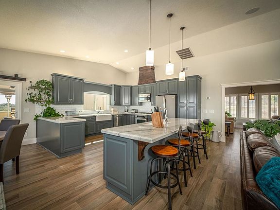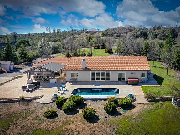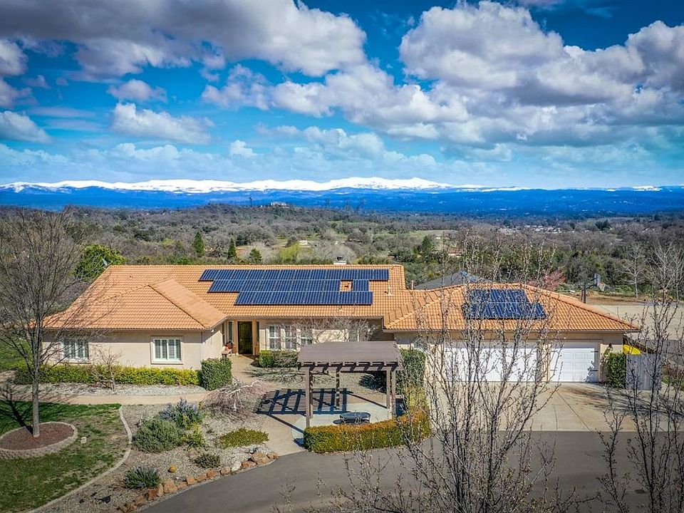 Upgraded single story custom home boasts never-ending scenic foothill and Sierra views! Perched atop, on a private 10-acre parcel, you can get away from it all, enjoy country living in high style while just a few short minutes drive away from El Dorado Hills, Cameron Park, and Folsom! Sellers have invested over $200,000 modernizing this exceptional home including 9.18 KW (owned) solar system, a complete kitchen/family room makeover, a robust owned energy savings solar voltaic system plus a long list of contemporary designer and infrastructure improvements that make this property a standout from the competition! Additionally, the rear yard features an outdoor kitchen, pool and generous cement patio area suitable for storing a large boat or RV. Property includes landscaping front and back, basketball hoop and cement pad and an extensive patio area around the pool for entertaining and enjoying the pool.
