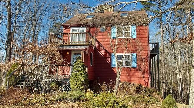 Nestled in the hills of Hadensville sits this custom built 2600 sq.ft. home with breathtaking views, rolling hills, private stocked pond, 7.8 acres of privacy, small barn, artist studio and natures beauty surrounding it! The property has lovely plantings/landscaping and serene walking paths around the home and to the pond. Inside you'll find a spacious open main level w/new heart pine flooring in the living room, stone FP, vaulted ceiling to loft area, eating area w/bar, formal dining room and Saltillo tile in the kitchen, full hall bath and foyer. French doors to a bright tiled Florida room with views of the hills and pond and side porches. Up the open stairway to the loft bedroom (office or nursery) plus second Master option w/tub shower bathroom & private balcony. From the loft access the top deck for ultimate 360 views! The walk out basement is one huge Master Suite with stone FP gas insert, bathroom w/double tile showers and it's own sun room complete w/giant hot tub! French doors from there lead to the private deck overlooking the pond. Sip your coffee or soak up with sun! Located just 25 mins from Short Pump or 35 mins from Charlottesville, this unique property won't last!
