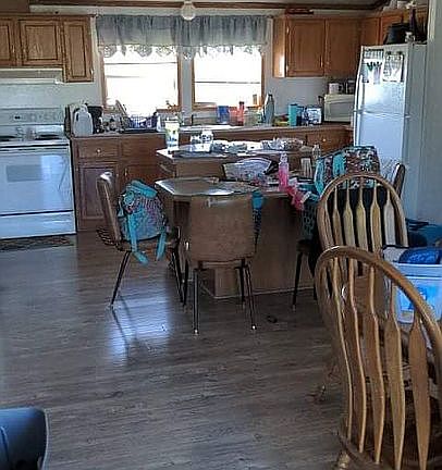 Property on 5 acres out in the country. Master bedroom and bathroom with jet tub and shower, walk-in closets, 2 other bedroom and full bathroom upstairs. Living room, open kitchen into dining room. Laundry/mudroom. Front and back wood decks. 30x40 shed with work bench and lean-to, garden shed, established garden space with strawberry bed and peach tree. All electric, house hooked up to rural water, however, there is well water on property to two hydrants.