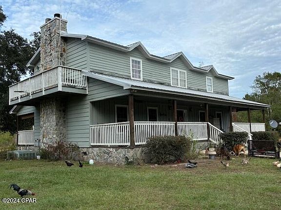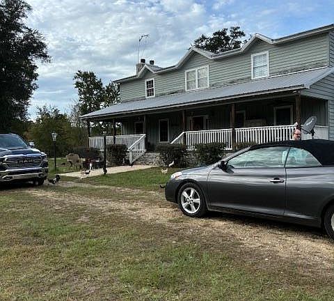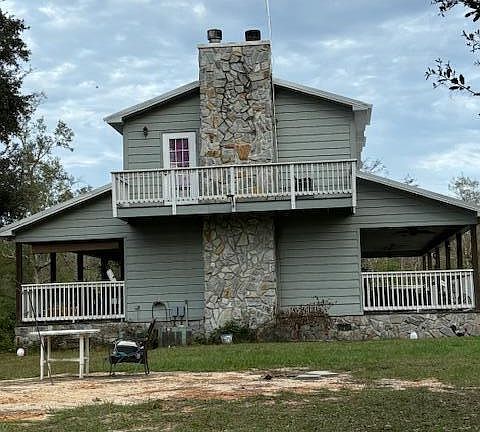 Country Living at its best. This beautiful piece of property has so many extras included. As you drive into the property up the long private driveway past a fully stocked fishing pond, this lovely home comes into view. Upstairs features two large bedrooms each with ensuite bathroom and balconies overlooking almost 9 acres Downstairs features an additional bedroom, 3rd full bath, large living area with full front and rear covered porches, kitchen has stainless appliances,. Rear porch access thru double French doors. from downstairs bedroom. Recent upgrades to the property includes a red 30 x 48 enclosed pole barn with 3 9 ft. rolling doors, cement floor, framed exterior walls with electric and built in benches. Property also features Two (2) power meters, 2 septic tanks, RV hookups with water, a new Culligan water softener system. Additional large shed and pole barn for all your storage needs. The rear of the property has a new well, 2 stocked pond and behind that are Cypress trees which borders Chapel Branch Creek. Garden shed and Pool. New pump so pool is ready for Summer. This house has it all, come check it out and see how all this peace and quiet can be all yours!