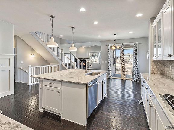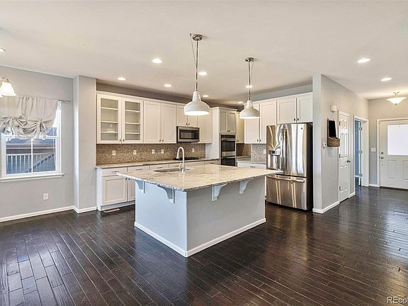 Welcome to 3982 Donnington Cir located in the gorgeous Kings Ridge/Crystal Valley neighborhood of Castle Rock. Nestled just to the south of downtown Castle Rock, this spacious home is ready for it's new owners! Walk in and fall in love with the open floor plan and high ceilings. The kitchen has newer cabinets, massive center island, gas range, and walk in pantry that will delight the chef in the home. Oversized living with sunny picture windows and stone fireplace create the ideal space to unwind at the end of a long day. Guest suite on the main level with an attached bathroom create the perfect spot for those out of town guests to rest their head at night! Upstairs you'll find 3 large secondary bedrooms with ample space for storage. Upstairs laundry makes doing laundry a breeze. The serene and private primary suite has views of Pikes Peak and an en-suite bathroom with soaking tub that is the ideal space to unwind at the end of a long day. Downstairs in the basement you'll find a hang out space that can be used for a movie theater room, game room, playroom; the options are endless. There is still plenty of space left to finish if you'd like! Outside, relax on your covered deck with a cup of coffee or glass of wine while watching the sunset over the Rockies. Your low maintenance backyard with turf makes this backyard even more amazing. Located close to Rhyolite Park, hiking, biking, and all the south metro area has to offer, this home is not to be missed!