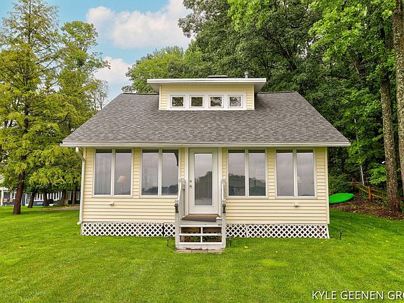 Welcome to your extraordinary lakeside haven on Gun Lake, a realm of unparalleled beauty and leisure. Poised upon an expansive 1+ acre expanse with 145 feet of pristine lake frontage, this enchanting cottage beckons you into a world of refined living. Inside, discover a harmonious convergence of spaces as the living, dining, and kitchen areas seamlessly intertwine, promising effortless gatherings and cherished moments. A fully updated bathroom graces the main floor, reflecting modern elegance. Elevate your experience further within the airy loft, offering versatile sleeping quarters or a canvas for imaginative pursuits. Bathe in the sun's embrace within the inviting sunroom - a sanctuary for morning serenity. Yet, the true allure lies just steps away - your private dock, a gateway to the tranquil waters of Gun Lake. Here, lazy summer afternoons unravel as you fish, kayak, or bask in the sun's radiant glow. This haven is not only a testament to luxury, but to location. A short distance from the Sand Bar & Grill Restaurant, an exceptional culinary gem, and in close proximity to the Whiskey Creek ORV area, where off-road adventures await, every facet of leisure is at your doorstep. The embrace of the oversized garage completes this idyllic portrait, ready to safeguard your vehicles and aquatic toys. Embrace the exceptional lifestyle on Gun Lake - where every aspiration finds its perfect expression.