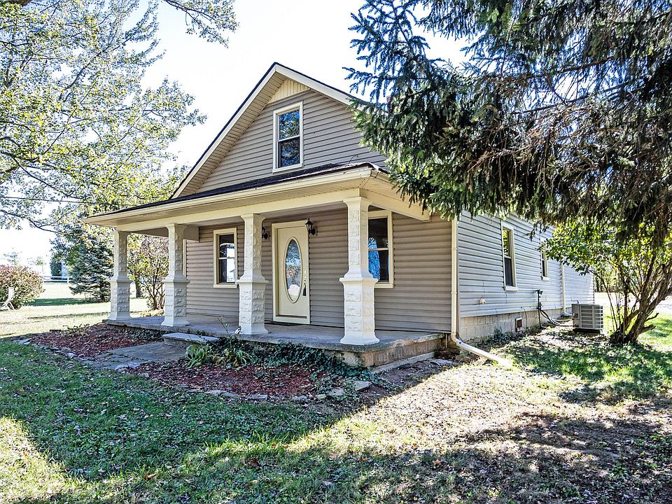 Delightful cape cod home on over an acre of land with a 42'x32' outbuilding. Maple raised panel cabinets in kitchen, laminate floors, green house window. Living room boasts exposed wood beams, and wood burning stove with heatilator. First floor spacious Owner's suite with private bath and walk in closet. You'll find bedroom two and loft on the second floor. Six panel doors throughout the home. First floor laundry. New central air in 2019. Covered porch with pillars for the ultimate relaxation experience in the country, yet a short drive to grocery, dining, and schools.