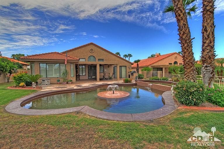 Located on the 11th fairway of beautiful Avondale golf course. Immaculate, 3 bedroom, 2 bath home with spacious patio and private pool and spa.Views of mountains and golf course are panoramic. Wonderful setting, peaceful and tranqil. Move right in and enjoy this lovely home with plantation shutters, natural light and brightness throughout. Three bedroom, two bath with third bedroom a den/office. Large chef's kitchen with granite counters, lots of cabinets, center island, and delightful breakfast area looking out to views of mountains and golf course in all directions. Oversized two car garage with lots of storage, and room for golf cart. Located on a quiet cul-de-sac street. Low HOA's and IID for much lower electric costs. Avondale has one of the best courses in the area, with a friendly and welcoming club,and memberships available. Call Avondale Golf Club to arrange a tour. You will love this community.