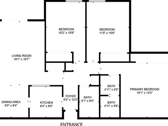 One spacious bedroom is available in this ground-floor unit, a lovely 1283 sq. ft., 3 bedroom, 2 bathroom condo at the Murieta in Newark. The unfurnished bedroom, 158 sq. ft., comes with large built-in closet. The guest bathroom is shared.