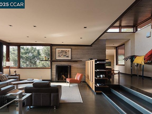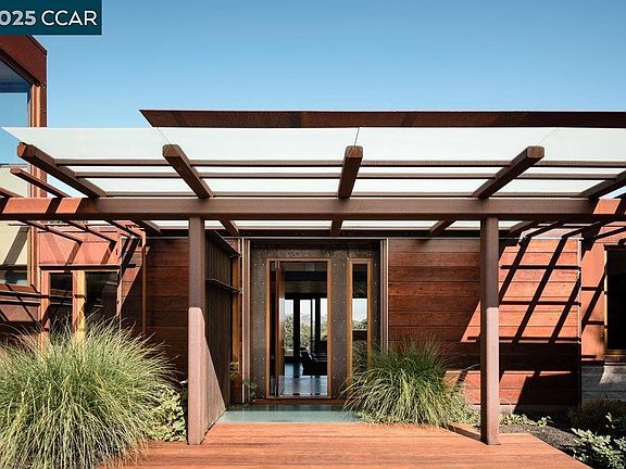 A rare architectural masterpiece by award-winning Bay Area architect Greg Faulkner offers a striking blend of modern design and natural beauty. Located on 1.02± acres in Lafayette’s prestigious Upper Happy Valley, the residence spans approximately 5,100 square feet and is thoughtfully oriented to capture sweeping views of Mt. Diablo from nearly every room. Expansive glass and open interiors connect to 1,400± sf of Ipe decking, terraced patios, and a solar-heated pool and spa, creating seamless indoor-outdoor living. The private grounds include a vineyard, bocce court, amphitheater, level lawn, and lush landscaping.The chef’s kitchen features top-tier appliances, a large island, dual sinks, and open flow to dining and living areas. A custom Rumford fireplace anchors the living room, which opens to a deck with panoramic views. The main level offers a luxe primary suite with walk-in closet, spa bath, and outdoor shower, plus a custom office and designer powder room. Downstairs: two ensuite bedrooms, media room, and desk area. Upstairs: two bedrooms with shared bath and private patio. Exquisite details include Anigre and walnut woods, Jarrah-trimmed windows, Venetian plaster, radiant heat, Lutron lighting, and a 3-car garage. Minutes to town, commute routes & top-rated schools!