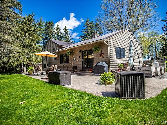 Lovingly renovated from top to bottom, 3983 Gates Rd emerges as a quintessential retreat. This stunning home is nestled on 4.09 acres amidst the serene countryside of Pompey yet is a convenient commute to downtown Syracuse, Wegmans, Fayetteville Town Center and FM schools. Adorned w/new vinyl siding, stone accents, Anderson windows & doors, and a metal roof, the exterior boasts a fresh appeal. The 18 by 44 ft. Stamp-Crete patio, meandering walkways and Ready Rock Stonewalls are surrounded by meticulously manicured gardens, providing an enchanting backdrop for outdoor gatherings. Inside, discover a haven of comfort and style, where a gas fireplace sets a cozy ambiance in the spacious living area. The open style eat-in kitchen beckons with granite countertops, custom cabinetry, stainless-steel appliances and a breakfast bar. Additional highlights include 3 spacious bedrooms, 2 full updated baths, a versatile bonus room; woodstove ready, a main level laundry, a convenient 12 x 30 outdoor shed for storage and newer mechanicals ensuring efficiency and peace of mind. This exquisite property offers the perfect blend of sophistication and functionality. Offers due 5/9 at 7 pm.