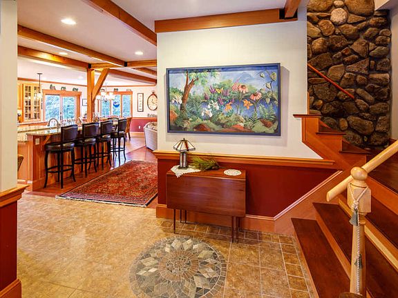 Completely surrounded by nature! No detail missed with marble counter tops, hardwood floors, and open concept entertaining. 2 master suites complete with walk-in closets, granite counter tops, and double sink vanities. Grand living room has the finest finishes of exposed beams and a stone fireplace. Not to mention the gourmet stainless and marble kitchen, with 2 islands, 2 ovens, 2 refrigerators, and a chef's pantry. Enjoy the outdoors in comfort with the large screened in porch and patio with a built in firepit. Large barn, 10+ acres available and all recreation out your front door.