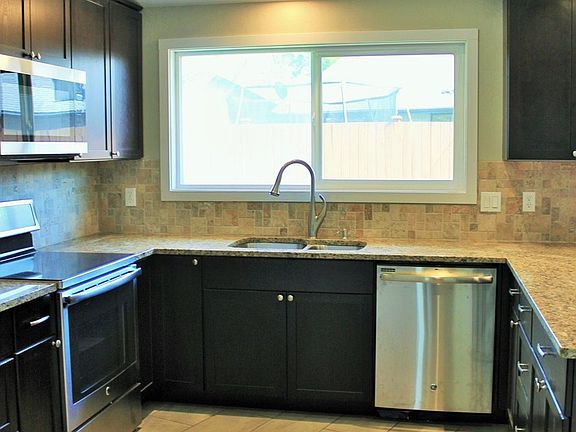 Fantastic fully remodeled home in a nice cul-de-sac! Spacious living room w vaulted ceilings & 2 skylights for great natural lighting. Brand new Kitchen w stainless steel appliances, granite countertops, beautiful tile floor, open to the family room. Master w double closet & private bath. Family room w wood burning fireplace and access to the fully fenced backyard w a patio & shed. Tasteful finishes throughout!