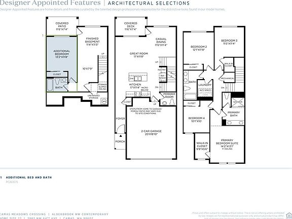 This quick move-in home offers luxury, low-maintenance living in a striking contemporary design. Enter on the main floor, where the open-concept layout connects the great room, dining area, and kitchen, with seamless access to the private rear deck. The kitchen features pure white flat panel cabinetry, rose gold hardware, a neutral slab quartz countertop, and a scalloped tile backsplash. The sleek KitchenAid stainless steel appliances including a 36 gas cooktop cater to everyday function and gourmet flair. Upstairs, enjoy a serene primary bedroom suite with a spa-like bath, three additional bedrooms, a hall bathroom, and a conveniently located laundry room. The lower level offers a flexible bonus space, a secondary bedroom suite, and access to a covered patio and HOA-maintained yard with lush landscaping. Interior upgrades include luxury vinyl plank flooring, soft-close cabinetry, slab quartz countertops throughout, and stylish lighting in brushed brass and black tones. This low-maintenance community is minutes from Lacamas Lake, Camas Meadows Golf Club, top-rated schools, and outdoor recreation. Easy access to Highway 14 and downtown Portland makes commuting a breeze while enjoying the charm of Camas. Schedule an appointment today to learn more about this stunning home! Disclaimer: Photos are images only and should not be relied upon to confirm applicable features.