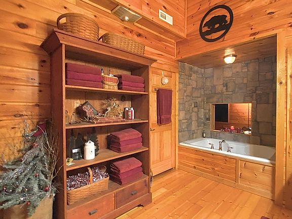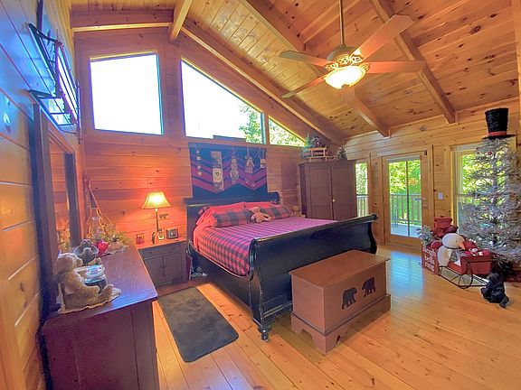 Beautiful Well kept cabin with amazing views!! This cabin sits on just over 29 acres. It has a two car garage with a service elevator that stops on the lower & Main level. This makes it very convenient with getting things into the home. You also have the option to pull around to the ample upper parking and enter the cabin on the main level with just a few steps. On the Main level you have a huge living room with windows over looking the Great Smoky Mountains , Open Kitchen , & Master Bedroom. Upstairs you have a second Master Bedroom , with high cathedral ceilings , Huge bathroom , private balcony with views. Lower level of the home you will find an open game room area with wet bar , Bedroom , & Bath room. This cabin has endless possibilities.
