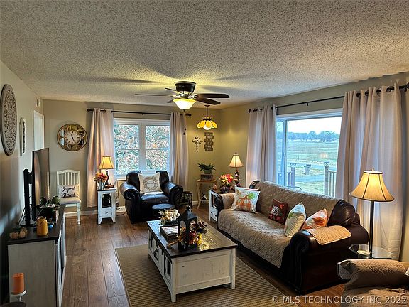 Unwind at the end of a long day at your secluded home on 10 acres m/l just outside of Dewey. New interior paint, flooring, and many updates to this country home! This 3BR/3BA home features front & back decks to enjoy the gorgeous and peaceful views, a pond, a circle drive, basement, large master bedroom with sitting area, and a wood burning stove. Fields can be hayed for income. New 14x40 storage shed!
