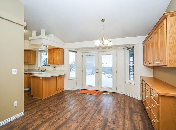 This rural-living home is nestled on an acre of land! Entering the home, you walk into a spacious open floor plan. The living room is bright and welcoming featuring a bay window. Then, walk into to the combination kitchen and dining room-great for entertaining and still being included. The dining room has built-ins that can be used as a serving buffet or hosts some of your favorite dishes. The dining room also offers easy access to the backyard patio with double french doors. The kitchen is spacious, has a window to view the sunset, and a pantry for added storage! The main floor also hosts to a master floor suite, 2 additional bedrooms, and a full bathroom. The third bedroom is great to use as a flex space-keep it as a third bedroom, or use it as an office. The room is also plumbed for main floor laundry in the closet. In the basement, there is a family room, a fourth bedroom, and laundry. The backyard has amazing features you just cannot find in the city-a greenhouse, barn, loafing sheds, and apple, plum, and peach fruit trees! Let's not forget the hot tub! This country home awaits you. Come view it today if you value peaceful living while being conveniently close to the city.
