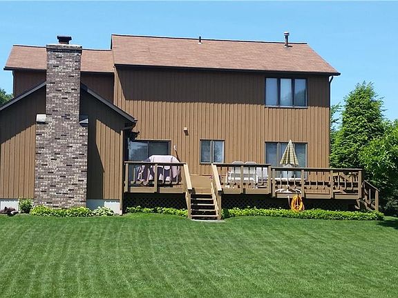 Meticulously kept 4 bed/2.5 bath colonial on beautifully matured tree-lined street on Onondaga Hill in highly-desired West Genesee School district. Ceramic tile foyer leads to large eat-in kitchen with gleaming refinished hardwood floors, formal dining room, large living room and open family room with fireplace. Enormous master suite with walk-in California closet and HUGE master bath with double-vanity. Professionally landscaped with big 2-tiered deck, overlooking gorgeous yard. Finished basement with recessed lighting and storage room with built-in shelves. This house is in immaculate condition! Come and see it before it's gone!