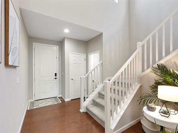It's time to stop searching and start living in your ultra-modern move-in ready 2 story. Upon entrance, you are warmly greeted by beautiful hazelnut hardwood floors that guide you through the bright and open floor plan with your own main floor private study, the cutest mud room, and a large kitchen. The heart of this home, the kitchen- features brand new blanca quartz countertops, loads of maple cabinets, brand new tastefully tiled backsplash, stainless appliances, and a huge eat-in kitchen island. Directly adjacent is the sizable family room with fresh carpet that effortlessly flows into your sunny dining room that allows you to walk right out to your professionally landscaped backyard paradise. On the upper level, you'll find a BRAND NEW carpet throughout, a massive loft, 2 sizable bedrooms that share a conveniently located full bathroom that has a brand new Calacatta Bella Marble Countertop and all new modern fixtures. Across the hall is your own roomy master retreat with it's own ensuite bathroom that includes a massive walk-in closet, newly finished gorgeous custom floating wood shelves, newly framed shower, and freshly added modern faucets/light fixtures/mirrors. Perfectly situated just a few blocks away from the 2 community pools, numerous parks, miles of hiking/biking trails, some of the nations best schools, and just a 2 minute drive to numerous dining, Castlewood Canyon State Park, Hidden Mesa Open Space, tons of entertainment, and I-25 this home is an absolute-must see!