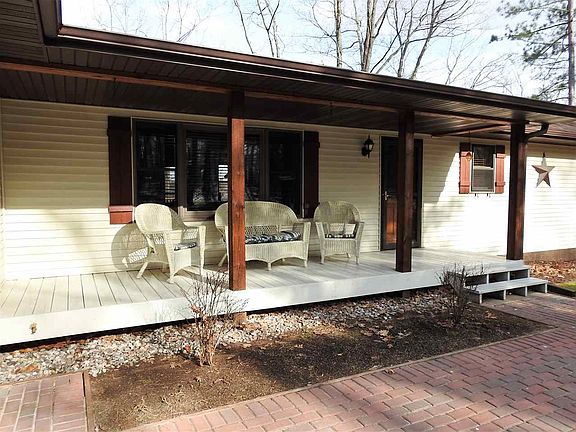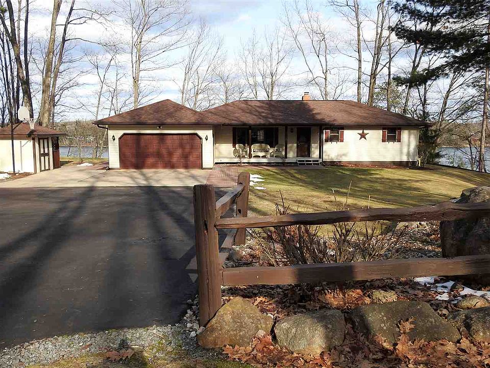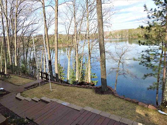 This gorgeous 4 bedroom, 3 full bath home on Lake Ellwood in Wisconsin's beautiful Spread Eagle Area sits on 1.3 acres with 100 feet of lake frontage, and boasts spectacular water front views. The home features a walkout basement, a 12x28 deck overlooking the lake, a private 8x12 deck, a brick wood burning fireplace with gas insert, 3 recently remodeled full baths, an attached 2 car garage, a detached 2 car garage with full electrical service, a gas fired 15 KW standby Generac generator with transfer switch (for the rare occasion of a power outage) and a treated wood dock. This beautifully landscaped property also includes a fenced in garden area and beautiful brick pathways.