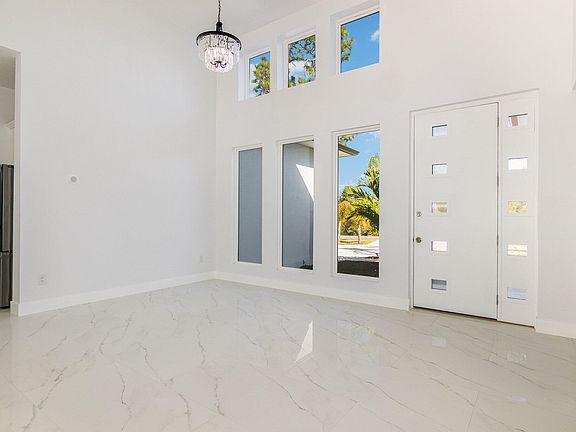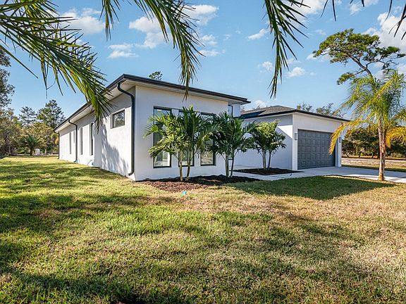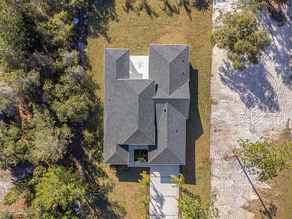 The Royal Trails Subdivision is a fantastic community with its proximity to charming towns like Mount Dora and Tavares, accessible to Orlando, and the beautiful natural surroundings. Having deeded access to Lake Norris provides residents with the opportunity to enjoy water activities and the serene lake environment. Your custom-built home 4/3.5. 2,687 sq ft ,1.01 acre, corner lot, offers a luxurious and comfortable living experience. 14 ft High ceilings in the main living area contribute to a sense of space and opulence within the home. The split floor plan has two primary bedrooms featuring en suite bathrooms with a walk-in shower and bathtub in one and a walk-in shower in the second bedroom providing privacy and convenience. 2 bedrooms to the left side with a bonus room at the front with beautiful windows ready to create your working space, game room or a 5th bedroom. The kitchen is well-equipped with white 42" shaker cabinets, a central aisle with cascade granite countertop, farm style sink, microwave and wall oven, LG stainless steel appliances, and recessed lights. Granite countertops in the kitchen and quartz countertops in the bathrooms and laundry room add a touch of elegance. Fans in all bedrooms enhance comfort. White marble porcelain floors 24x48 through the whole house create a bright and airy atmosphere. For outdoor entertainment, the back patio is a conditioned space for an outdoor kitchen and the location of a half bathroom. A concrete driveway and back lanai/patio contribute to the property's functionality and appeal. To enhance your home , Palm trees ,irrigation, ample driveway and landscape creates a welcoming atmosphere.