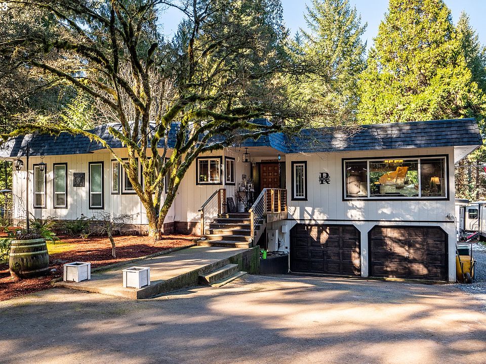 A slice of heaven with park-like grounds, close to town! Home features a fantastic separation of space with separate entrances. Views from every window, main level master suite with deck access, formal dining area, beautiful pass-through fireplace, 4 bedrooms and more. Outside is 1.75 acres and features a huge deck for entertaining, large shop, koi pond, swimming pool, circular driveway, creek with irrigation rights and more. Many recent updates. 7 min to 126 onramp, Thurston school district.