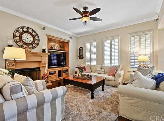 San Lorenzo in the Vista Del Verde Community of Yorba Linda welcomes you to this exquisite golf course home. You'll be spoiled from the moment you walk up via a nicely manicured walkway that leads to a private front courtyard that is both tranquil and inviting. As you walk in you will immediately feel a sense of warmth and classiness. High ceilings, wood flooring, and custom plantation shutters throughout is just the beginning of the number of extras this property has to offers. Enjoy the golf course views while spending time in the living room that's highlighted by a gas starting fireplace with custom mantel and built in entertainment center. The kitchen is loaded with the following features; lots of cabinet space, a double oven, large kitchen island with granite counter tops, a Thermador cooktop, a walk in pantry, an ultra quiet dishwasher and stainless steal appliances. All three bedrooms offer a bit of customization, starting with the first bedroom that is currently used as a sewing room with custom cabinetry, the second features a custom organizational closet space, and the master features a walk in closet and a private remodeled bath with double sinks, separate stand up shower and a soaker tub. All bedrooms and living room include ceiling fans. The indoor laundry room completes the interior. Enjoy the golf course views siting under the shade of a custom patio in your private back yard. Also included is a water softener system, community pool/spa with a community room.