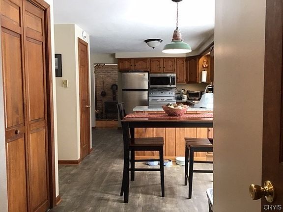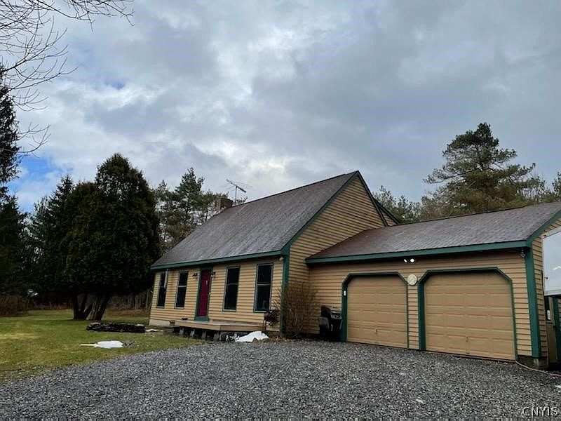 This cozy home on 20 acres is exactly what you have been looking for. Sitting atop a hill with an amazing view of the valley below, this updated cape features 3 bdrms, a wood burning stove & spacious 2 car garage. Lovely original hardwood flrs, carpet in 2 bdrms. Unique Penny floor in 1st floor half bath. Eat in Kitchen/nook/laundry rm is top quality vinyl laminate & kitchen cabinets are custom hardwood, all appliances included. Ample storage in unfinished basement. Spectrum cable/internet available, directv & cable ready, satellite internet ready. A variety of wildlife can be found on the property. Whether you enjoy photography or hunting this location has much to offer. Deer, turkey, ducks are regular visitors. 4-5 acre pond on property allows for great kayaking. Miles of quad & walking trails, good supply of downed firewood, tons of sugar maple trees for syrup making. Fishing, boating, & ice fishing at nearby Lake Tuscarora. Close access to state snowmobile trail system, all adjacent properties are 25-100 acres mostly undeveloped hunting land. 2 parcels total 20 acres- house on 1 acre. Tax map #s 164.-1-21 & 164.-1-21.4 Town plows dead end road, only house on road 2022-05-06