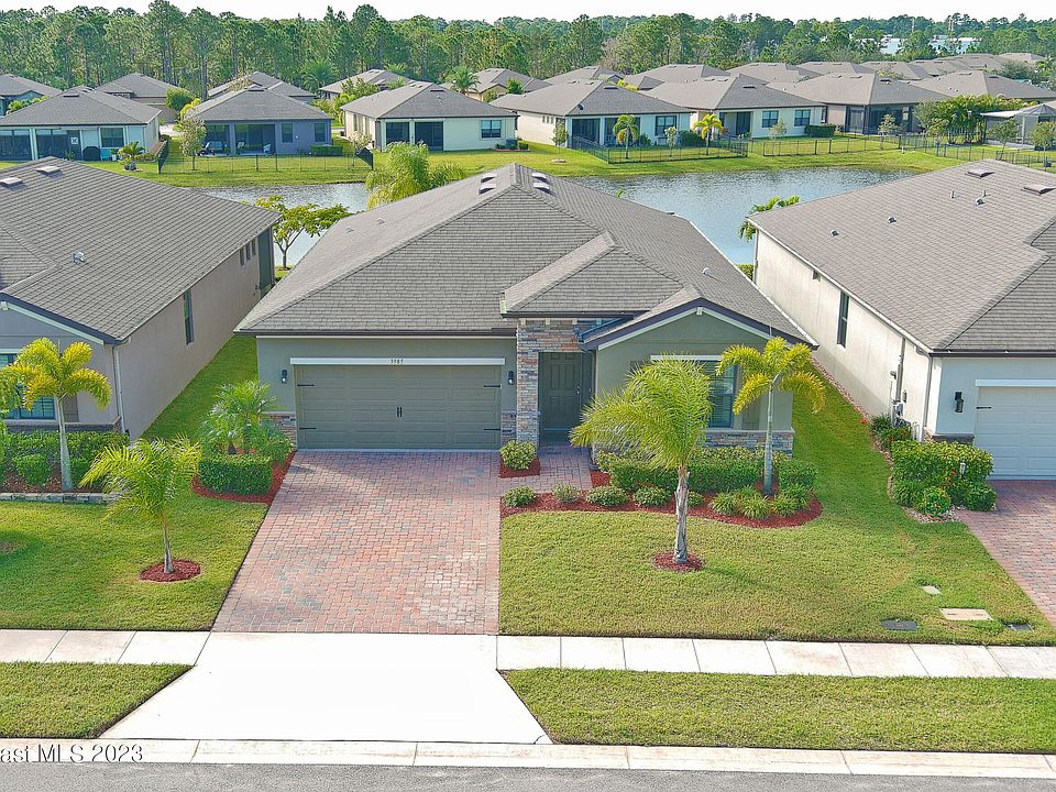 Amazing opportunity to own a FULLY FURNISHED home with lovely LAKE VIEWS! Live in a 55+ gated community with meticulously maintained surroundings. Tastefully decorated and was only used as a second home. It boasts tile in the living areas, upgraded light fixtures, granite tops, stainless steel appliances, a center island, a walk in pantry, an open floor plan, vaulted ceilings and so much more. The sellers spent thousands upgrading the back patio area with pavers and a screen enclosure. Enjoy the lake views from your back patio! This home comes with storm shutters, and the back section has accordion shutters. LAWN CARE INCLUDED and LOW HOA! Enjoy the carefree lifestyle with close proximity to great shops and restaurants. The best priced home in the neighborhood, won't last