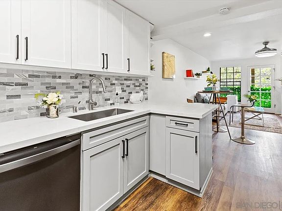 Experience luxurious living in this stunning, turn-key, 2-bedroom, 2-bathroom condo located in the exclusive, gated community of The Terraces at Mission Hills in San Diego. This single-story gem boasts a bright, open floor plan situated at the end of a serene cul-de-sac. Enjoy a completely updated kitchen with quartz countertops, stainless steel appliances and a convenient breakfast bar. The spacious living room features a beautiful fireplace that leads to a private balcony, perfect for relaxing or entertaining. Additional highlights of this immaculate property include laminate wood flooring, modernized bathrooms, an inside stackable laundry closet and assigned tandem parking for two cars. Residents have access to premium community amenities including swimming pool and spa. Ideally situated, this condo is within walking distance to the charming Old Town San Diego and the vibrant Mission Hills area, offering easy access to local restaurants, entertainment, schools and major freeways. Don’t miss out on this exceptional opportunity for comfortable and stylish living in a prime location!