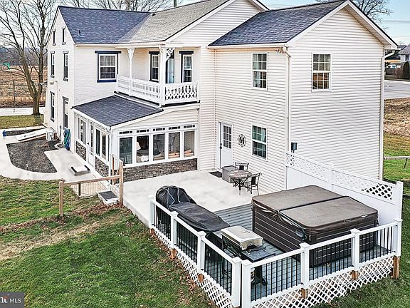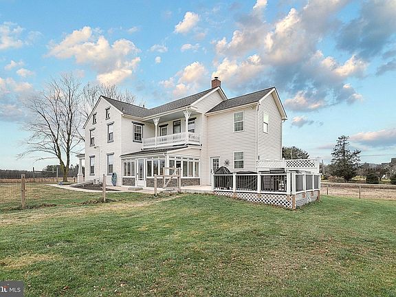 Step back in time in this 1880 meticulously renovated Farm House. The living room is situated directly in side the entrance and boasts tons of natural sunlight as well as a cozy see through gas fireplace. The dining room area is perfectly positioned between the living room and directly behind the kitchen facilitating ease of conversation and gathering in the main living room. The spacious open kitchen offers a plethora of counter space, island with seating, quartz countertops and stainless appliances. There is also an large laundry room including the washer and dryer, cabinets and soaking sink. Also a half bath on the first level. The Dutch door leads to the open sun room which offers panoramic window views and a mini split for year round use. Ascending to the upper level you will find a bright cheery office also perfect for a loft room or flex space. A large primary bedroom has wood flooring, plenty of windows and has it's own private balcony. The primary bedroom also hosts an attached primary bath with a soaking tub and tiled shower. Don't forget the walk in closet.... There are two additional bedrooms on the upper level with a full bath. Attic space is used for additional storage. Enjoy multiple outdoor living spaces including a 12x12 Patio, an 11x12 deck with privacy fence, and a grilling area, a fenced in back yard, a pad for a play gym, fire pit area as well as a fenced in area for your pet. This beautiful property also affords you a large rear and side yard great for yard activities in the summer air. Store all you yard equipment and essentials in this large barn. The barn has a second floor for storage. All this is situated on 6.97 acers.