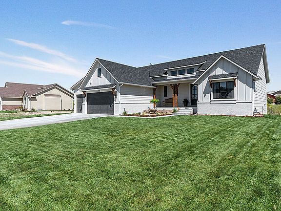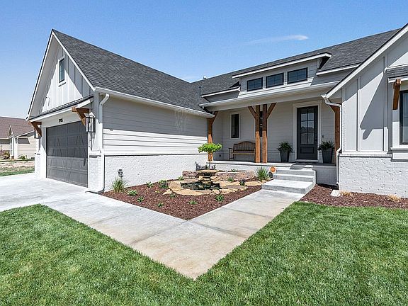 CONTACT OWNER DIRECTLY - POTENTIAL BUYERS ONLY: Justin Wolf 316-285-2954 Absolutely stunning almost BRAND NEW 3600 sq ft home built by McClellan Enterprises in 2022 with floor to ceiling windows sitting on one of the most serene lots in the Estancia development! Enjoy the oversized back patio while you view ducks, birds and rabbits playing in the back yard “wetlands". Two separate living areas feature not one but TWO built-in stone fireplaces, and open concept living/kitchen/dining areas perfect for entertaining guests. The spacious kitchen features quartz countertops with soft-close cabinets and ample storage. A walk-in pantry is equipped with built-in shelves and outlets. Split-bedroom ranch design features a master bedroom with beautifully designed master bath equipped with double-sink vanity and an oversized soaker tub ideal for relaxation. The master closet with built-in shoe rack leads to the laundry room equipped with cabinet space and it's own counter space. On your way to the basement, walk through an additional living space with a built-in desk, surrounded by picture windows - a calm and inviting work or lounge environment! The basement features two large bedrooms with a 3rd bathroom, a large open living area for entertaining guests. On the living room north wall under the windows it has been pre-plumbed in for a wet bar to be added at a future date! Behind the living room you will find 200+ sq ft of storage space with a large open room any hobbyist would dream of. This house features 3 oversized storage closets - two on the main floor and one in the basement. Fall in love with the beautiful pond stocked with koi fish, and a lush yard equipped with a Rain Bird sprinkler system. Home is also equipped with a security system that will stay with the house!
