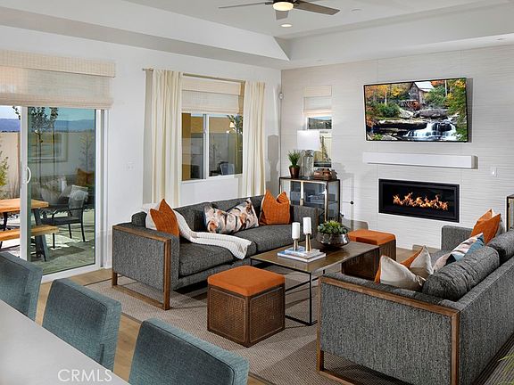 MLS#EV23062817. Move-in December! Beautifully upgraded Model Home with a great location at the end of a cul-de-sac! Welcome to Model Home Plan 3X in Esplanade at Sommers Bend, a 55+ resort lifestyle community in Temecula, CA. Enter through the inviting covered porch and you’re welcomed into the foyer which connects to the dining room and open concept living space. Sliding glass doors off the dining room open to a cozy courtyard. Enjoy the view of your backyard oasis and covered outdoor living from the island kitchen and large gathering room. A Multi-gen suite with a separate front entry, living/dining room, and ensuite bath is located at the front of the home. The owner's suite is tucked away in the back corner of the home for maximum privacy and features a super shower and large walk-in closet. Upstairs is a sizeable loft that is a perfect game or hobby room. Structural options include: fireplace, multi-gen suite, super shower, door from laundry to walk-in closet, sink at laundry, sliding glass door at bed 2, drop-in tub at secondary bath, and second floor loft.