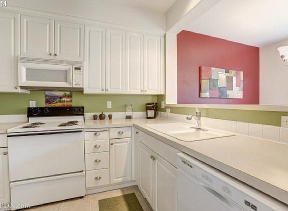 Cute condo that lives like a townhome with fenced back yard. Nice living room with corner gas fireplace, dining room area, 1/2 bath, kitchen w/good counter space and pantry. All appliances included. Large master upstairs with double closets, bath with double sinks. Two other bedrooms, full bath & laundry area also upstairs. Oversized one-car garage and driveway for parking. Great location.