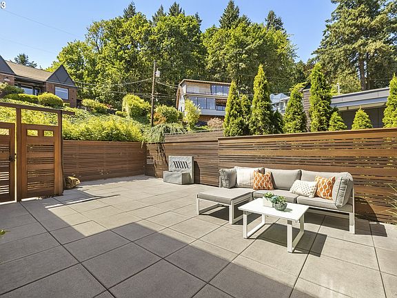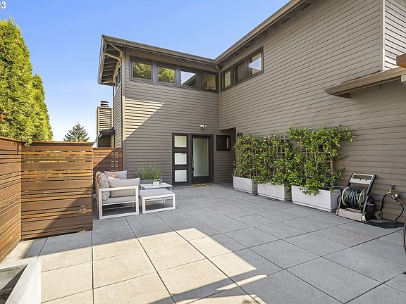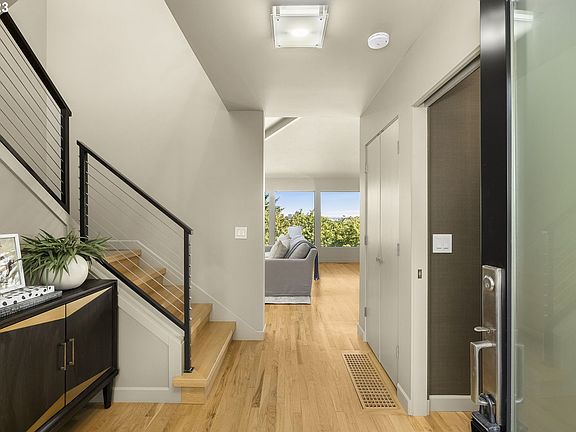 Welcome to this stunning home, offering breathtaking views of Downtown Portland, Mount St. Helens, Mount Hood, and the serene Willamette River. With walls of windows, natural light floods each room while showcasing the picturesque surroundings. The home boasts outdoor decks on all three levels, providing ample space for outdoor entertainment and relaxation. Inside, you'll find beautiful hardwood floors throughout, creating an inviting and warm ambiance. The living room features an in-ceiling speaker system and a gas fireplace, perfect for cozy evenings. The remodeled kitchen is a chef's dream, complete with a heated Granite bar, high-end stainless steel appliances including a Wolf six-burner cooktop with a griddle, and a double oven with a warming drawer. Upstairs, retreat to the primary bedroom featuring a gas fireplace, a large walk-in closet with a washer and dryer, and a luxurious ensuite bathroom with double sinks and a walk-in shower. Enjoy your own private balcony, a perfect spot to soak in the stunning views and unwind. The lower level features another bedroom suite with large walk in closet, private bathroom and deck. The second bedroom downstairs also features a deck with wonderful views. Additionally, there is an office/bedroom space and a utility room with a second set of washers and dryers, providing functional and flexible living spaces. Outside, a private front courtyard greets you with tranquility and adds to the charm and privacy of this exceptional home. The 2-car attached garage is wired for EV charging, providing modern conveniences for electric vehicle owners. 2 tankless hot water heaters. Minutes to Downtown/Pearl District, OHSU, restaurants and more. Lincoln schools! [Home Energy Score = 1. HES Report at https://rpt.greenbuildingregistry.com/hes/OR10220278]