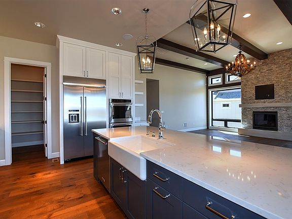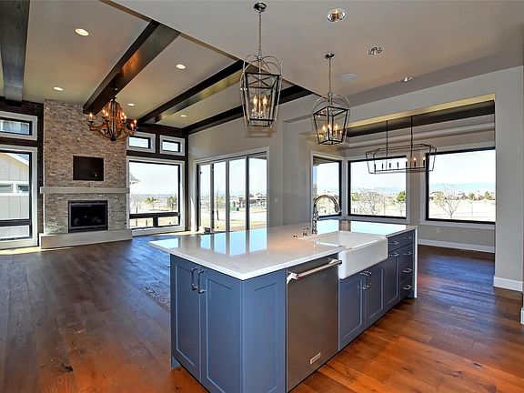 Stunning home at Harmony Club by Luxury Homes. Kitchen w/high end cabinetry & appliances, farmhouse sink, quartz counter. Statement making floor to ceiling window package in great room paired with gas fireplace w/floor to ceiling stone surround, brick wall accents & ceiling beams make this an inviting space. Daylight bsmt w/custom wet bar, fully equipped theater rm, wine cellar. Covered back deck w/mountain view! Min sport membership to Harmony req & Buyer responsible for $160/month sport fee