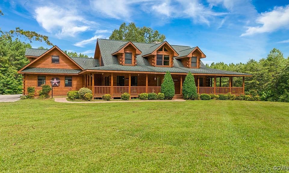 Welcome to 3987 Burkeville Road, a stunning log cabin nestled on 30.7 serene acres. This beautiful home features three spacious bedrooms and a versatile home office that can efficiently serve as a fourth bedroom. Enjoy the grandeur of tall, vaulted ceilings adorned with beams and a cozy stone fireplace with gas logs. The open balcony overlooks the inviting den, creating a perfect space for relaxation and gatherings. With 2.5 baths and hickory select flooring throughout, this residence combines rustic charm with modern comforts. The home is connected to KINEX Fiber internet. Additional highlights include an attached garage with a 220 amp hookup and is wired for a whole house generator for peace of mind. Outside, you'll find a massive detached garage equipped with electricity and a concrete floor, complemented by a convenient lean-to for extra storage. Don't miss this opportunity to own your dream log cabin! Schedule your showing today!
