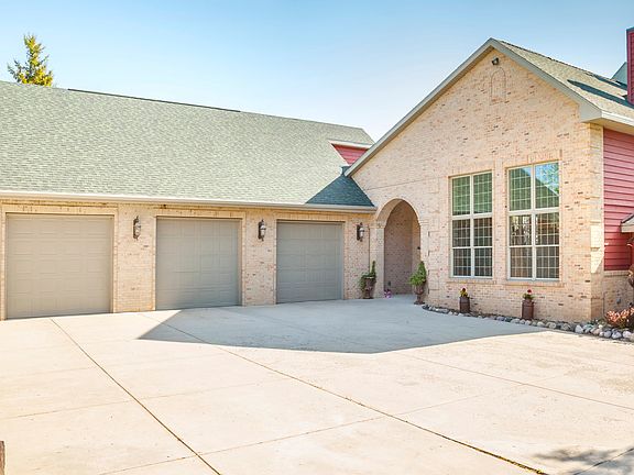 Stunning custom designed farm house on nearly 19 acres just outside of Pulaski, 10 minutes from Green Bay. Enjoy the beautiful wooded lot, pond with bench, and amazing potential for hobby/farm, gardening or animals. Appreciate nature at its finest – seller planted nearly 1000+ trees plus gardens and flower beds! The home is one of a kind with custom antiqued hand painted wood work, reclaimed beech wood hardwood floors, original exposed brick accent walls, soaring vaulted ceilings, coffered foyer entry, custom hardwood cathedral ceiling, in optional formal dining and/or office with custom wainscoting, chefs kitchen with oversized designed rustic red island, granite counter tops, walk-in butlers pantry, stone flooring, dinette nook, wall of windows/French doors, leading to Trex deck.