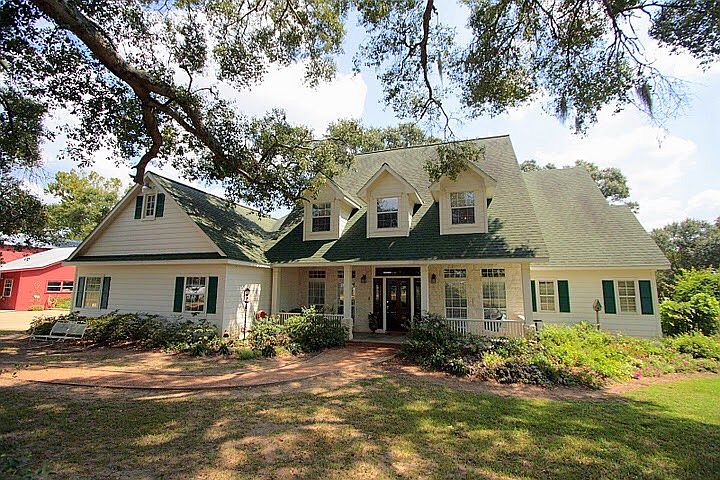 Remarkable home shaded by enormous oak tree on 5 acres. Arched bead board entry, with office and formal dining, vaulted ceiling, Avanza countertops, walk in pantry, oversized utility, AC vented and floored attic space, huge rear porch, screened side porch, front porch, and many extras. Great views, antique windmill, large worshop/barn with RV storage and tack room, fenced irrigated garden, apple, peach, pear, plum, fig trees, grape arbor, and black berries. Pasture for horses, rail fencing.